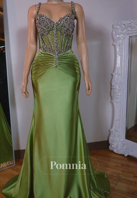 P2065 - Amazing Strapless Beaded Mermaid Pleated Long Prom Evening Formal Dress