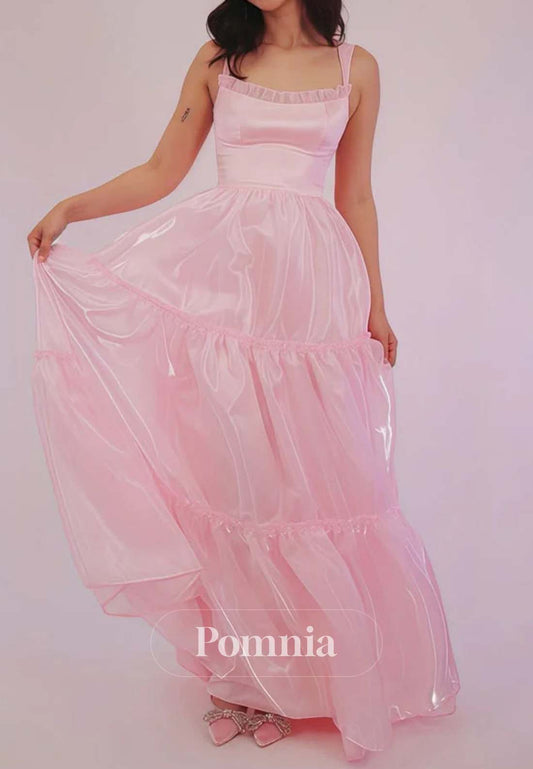 Sheah Spaghetti Straps Square Ruched Evening Dress
