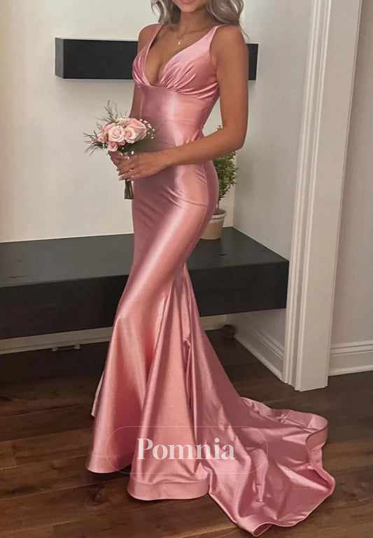 Stylish Mermaid V-Neck Party Dress with Sleveless