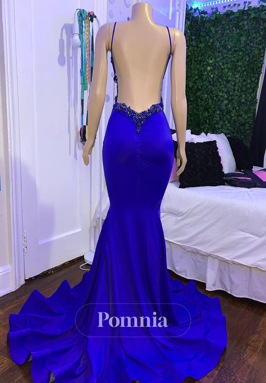 Royal Blue Spaghetti Straps Sweetheart Prom Dress with Slit Evening Dress
