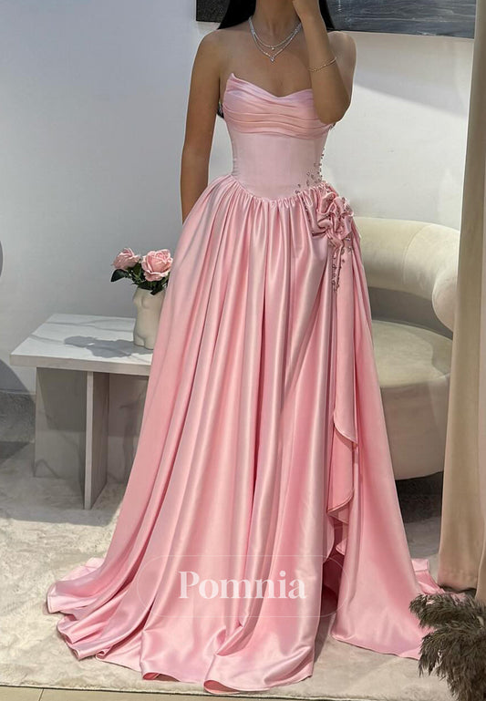 Blushing Pink A-Line Strapless Sleeveless Slit Prom Dress