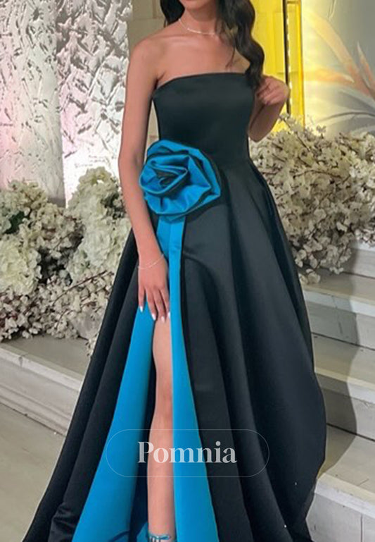 Simple A-Line Sleeveless Strapless Prom Dress with Slit