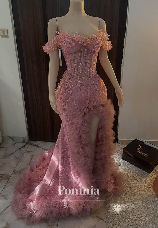 Off The Shoulder Sleeveless Long Mermaid Prom Dress With Split