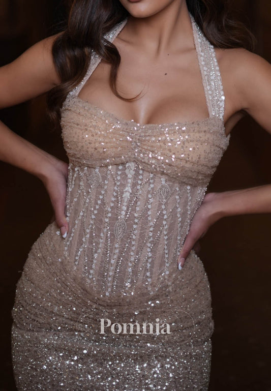 Glittery Sequin Beaded Long Prom Dresses Backless Evening Party Gowns