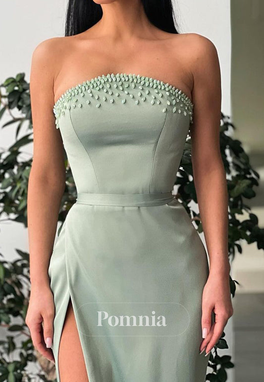 Mint Green Sleeveless Strapless Slit Prom Dress