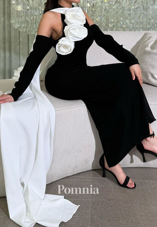 Black A-Line Floral Appliques Empire-Waist Prom Dress