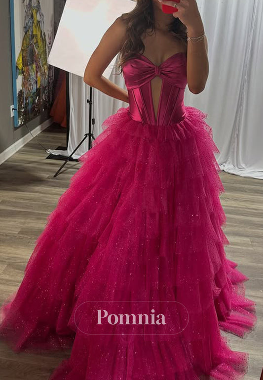 Fuchsia A-Line Sleeveless Strapless Prom Dress with Ruffles Evening Dress