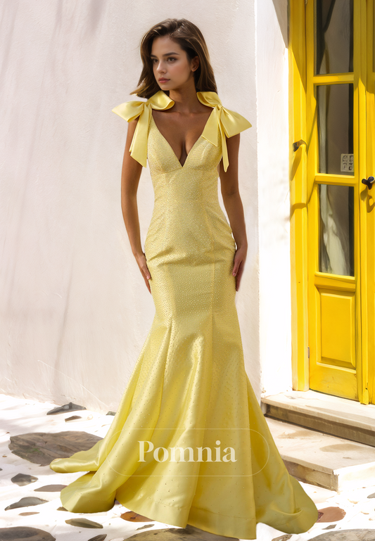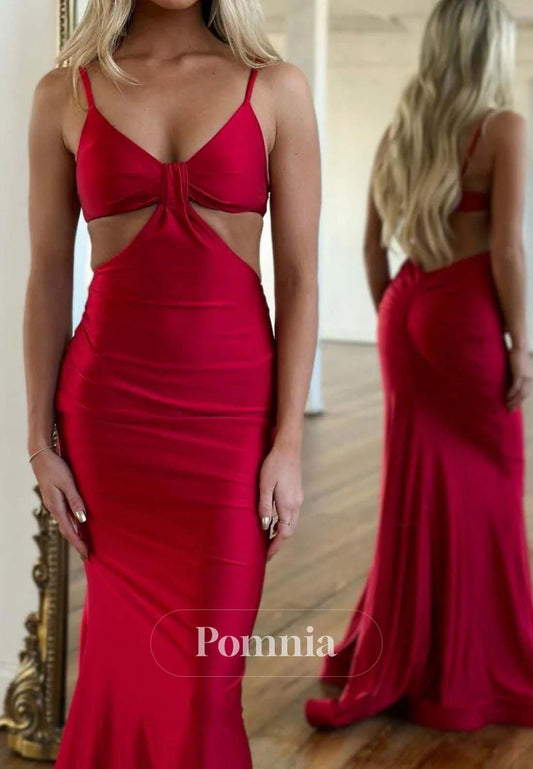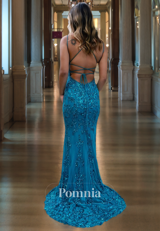 P1273 - Spaghetti Straps V-Neck Appliques Sleeveless Mermaid Prom Party Formal Dress