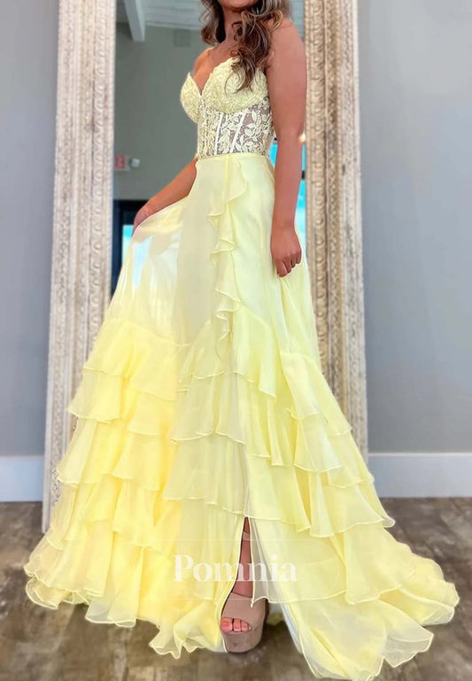 Daffodil A-Line Spaghetti Straps Sweetheart Prom Dress with Ruffles
