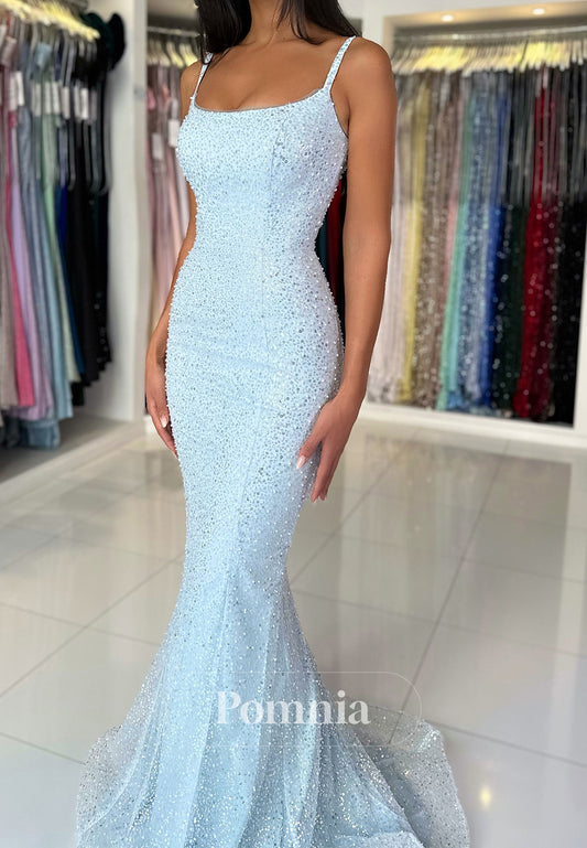 Mermaid Spaghetti Straps Scoop Prom Dress with Sequins Evening Party Dress