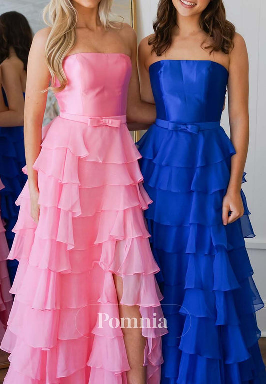A-Line Strapless Sleeveless Slit Ruffles Prom Dress