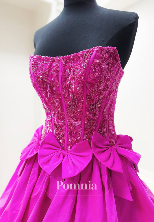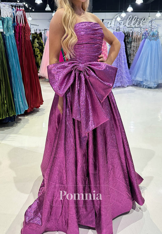 Orchid A-Line Sleeveless Strapless Prom Dress with Bowknot
