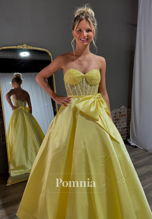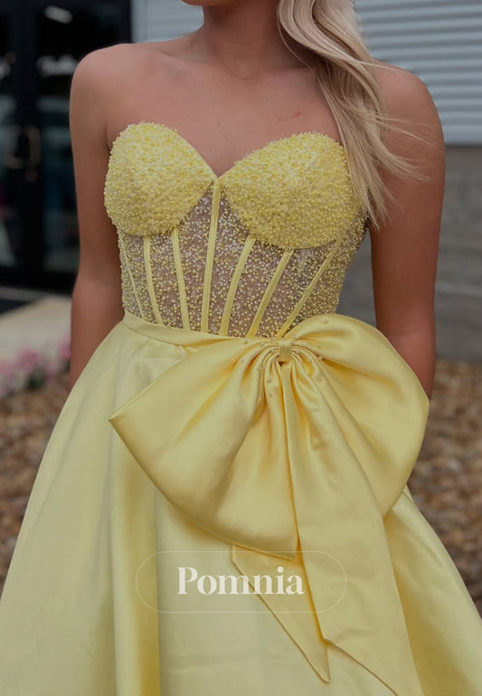 Daffodil A-Line Sleeveless Strapless Prom Dress with Bowknot Empire-Waist Evening Formal Dress