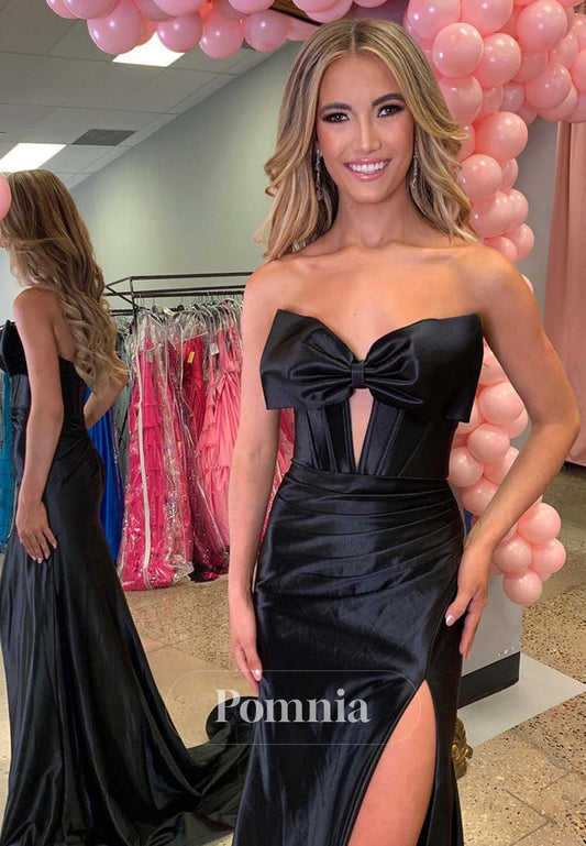 Sheath Sleeveless Strapless Prom Dress with Slit Bowknot Evening Party Dress