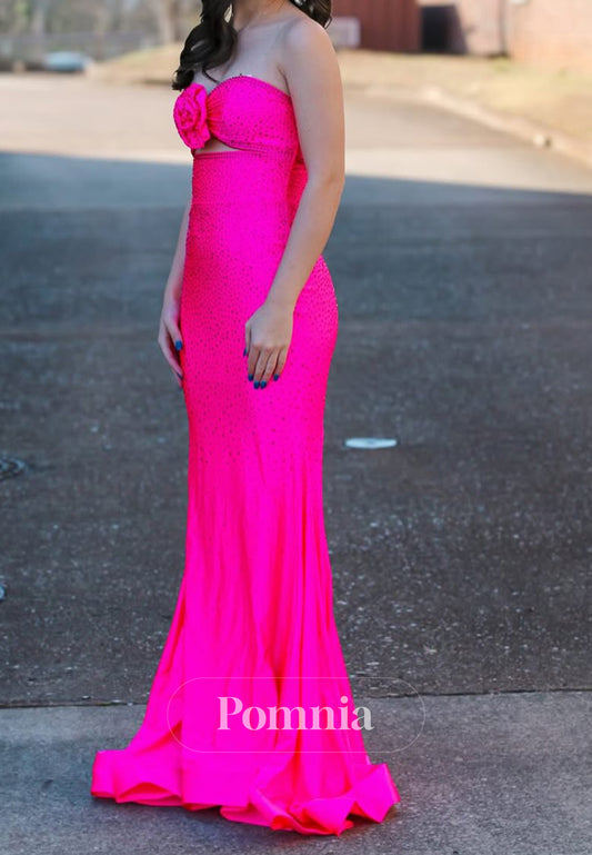 Fuchsia Sheath Sleeveless Strapless Floor-Length Sequins Evening Formal Dress