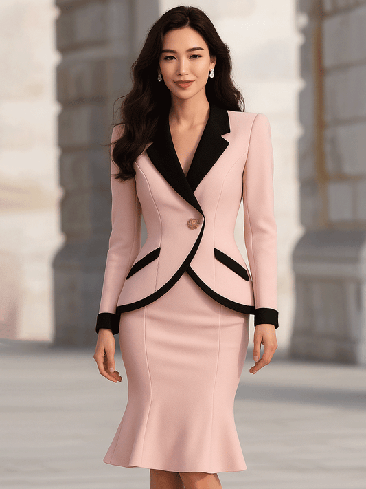 Blush Contrast-Trim Peplum Suit Set