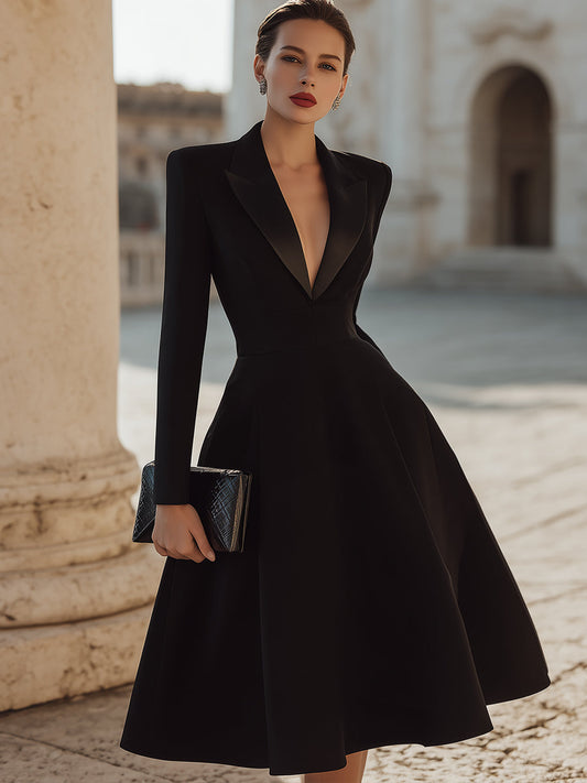 Structured Plunge-Neck Mini Dress With Flared Hem
