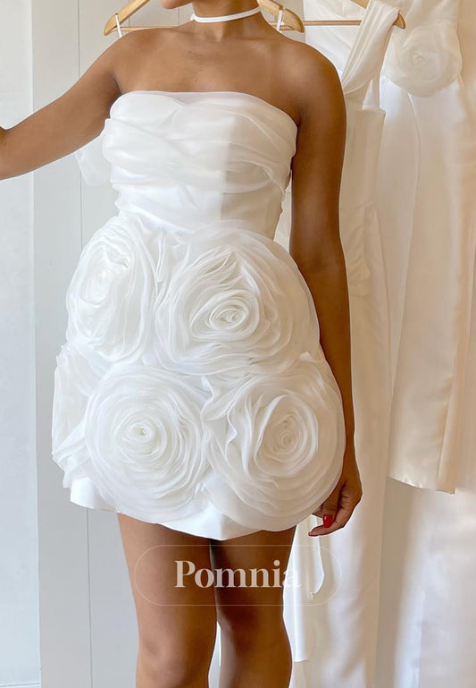 Simple A-Line Sleeveless Strapless Short Wedding Dress