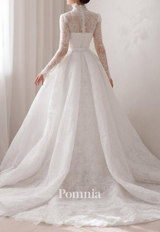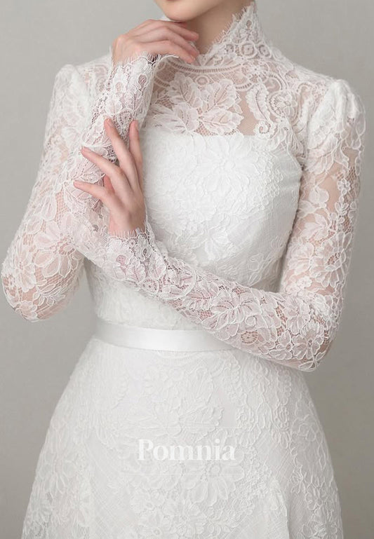 A-Line Long Sleeves High Neck Corset Lace Wedding Dress
