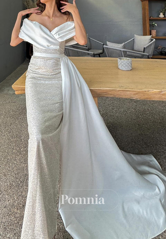 Sheath Off-Shoulder Sleeveless Ruched Satin Wedding Dress