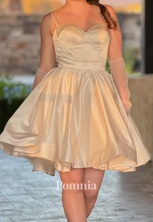 Simple Spaghetti Straps Square Empire-Waist Satin Wedding Dress