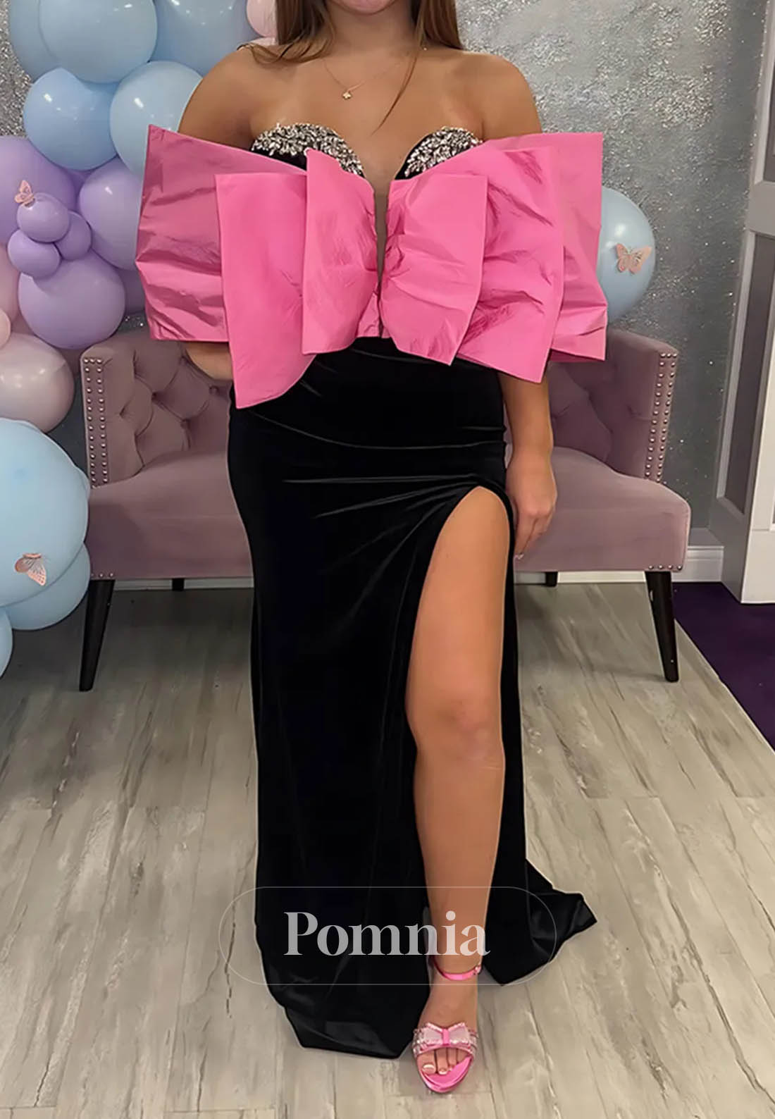 Command attention in this luxurious black velvet prom dress, where sophisticated minimalism meets dazzling embellishment. The strapless sheath silhouette hugs your curves with precision, while intricate beadwork catches light with every movement, creating an enchanting sparkle. A tasteful slit adds modern edge and graceful mobility to this floor-length design. Crafted from sumptuous velvet, this gown delivers timeless elegance with contemporary allure—ideal for those seeking understated luxury with undeniable impact. Perfect for prom, black-tie events, or any occasion where refined glamour is essential.