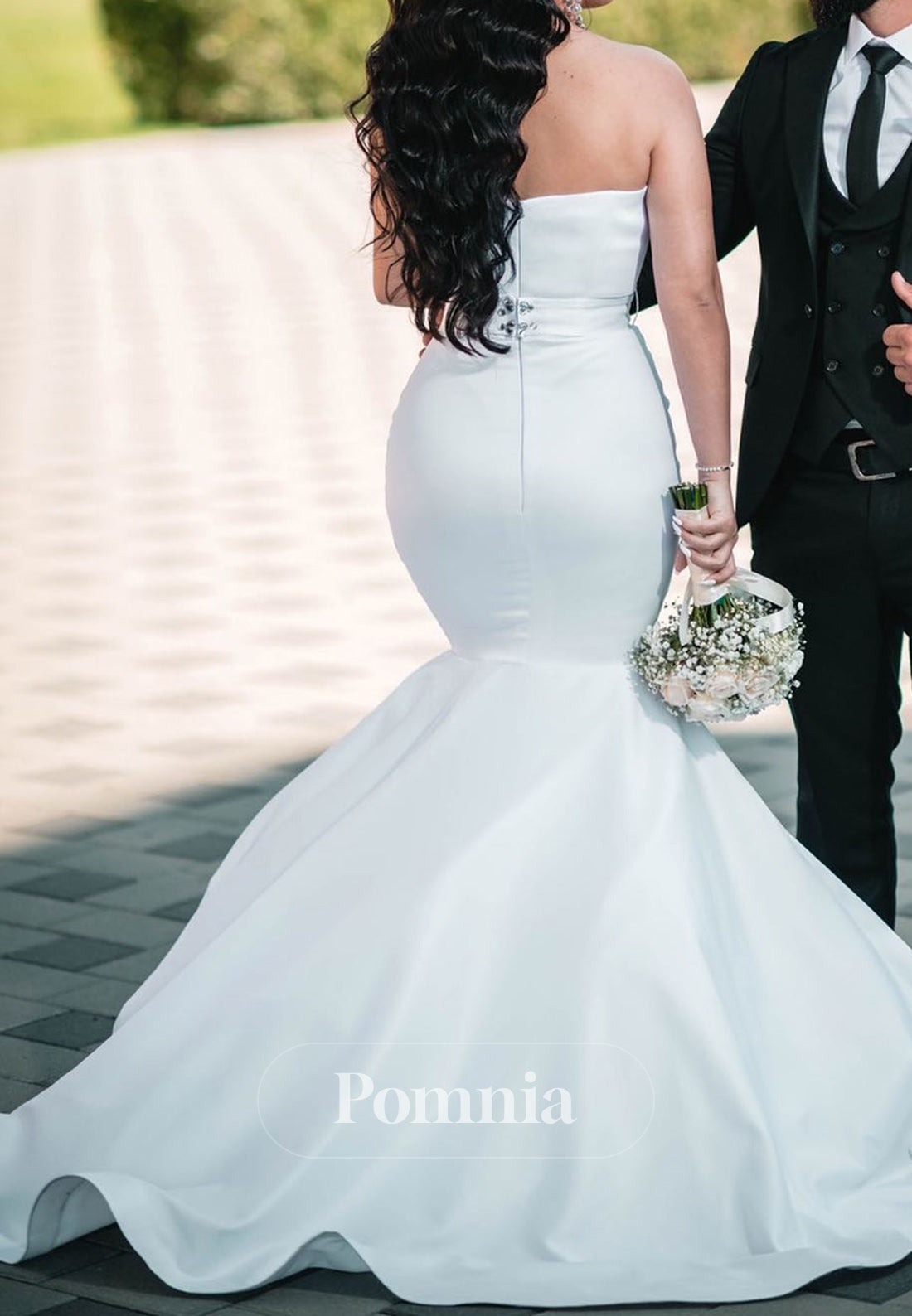 Simple Sleeveless Strapless Beads Mermaid Wedding Dress