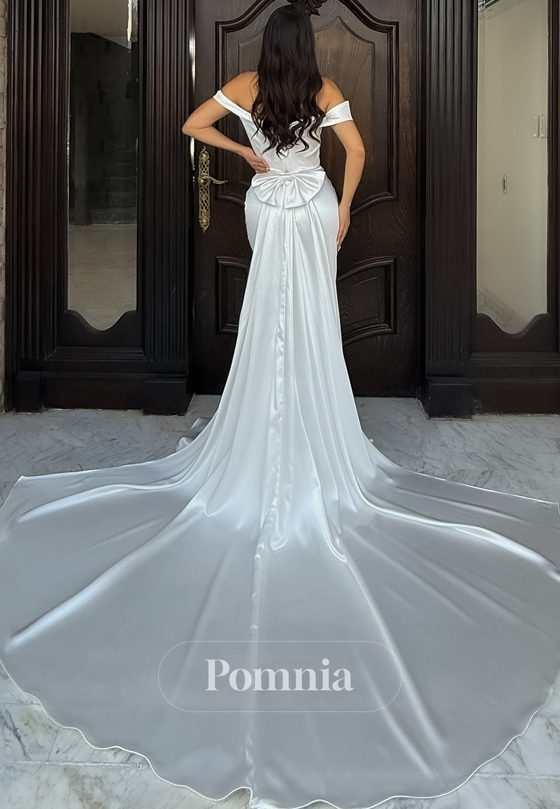 Sheath Off-Shoulder Sleeveless Slit Satin Wedding Dress