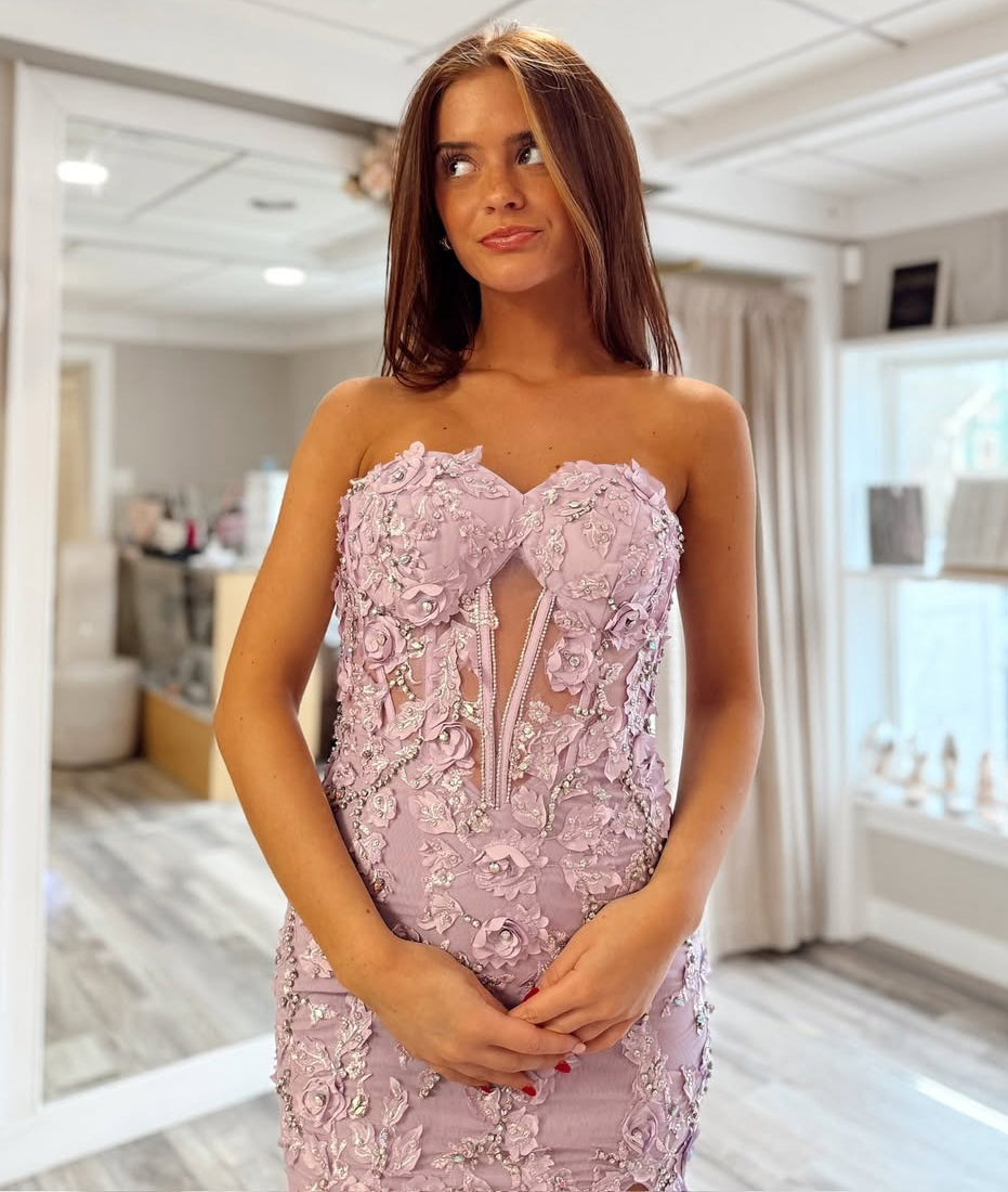 Radiate elegance in this refined A-line prom dress with a strapless silhouette that exudes timeless sophistication. The sleeveless design pairs seamlessly with ornate appliqués that add artistic detail and visual interest across the bodice. The flowing A-line skirt creates a graceful, flattering silhouette that moves beautifully throughout the evening. This dress strikes the perfect balance between classic glamour and contemporary style, making it an exceptional choice for prom, galas, and formal celebrations where understated luxury is appreciated.