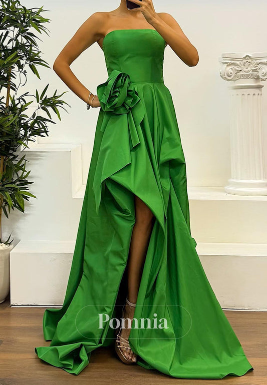 A-Line Sleeveless Strapless Slit Floral Appliques Evening Dress