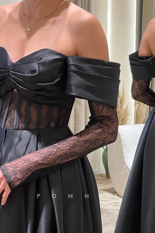 P1589 - A-Line Strapless Sweetheart Pleated Satin Evening Formal Dress with Sleeves
