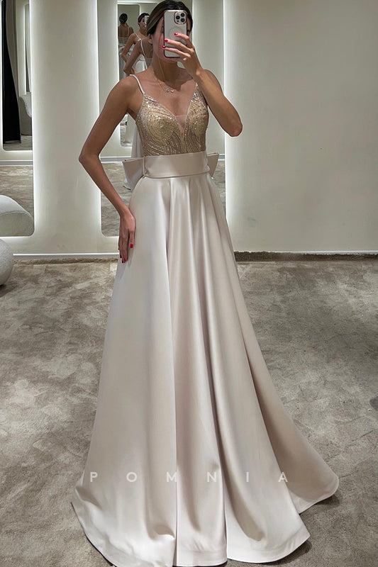 P1592 - Spaghetti Straps A-Line V-Neck Sleeveless Appliques Prom Evening Formal Dress