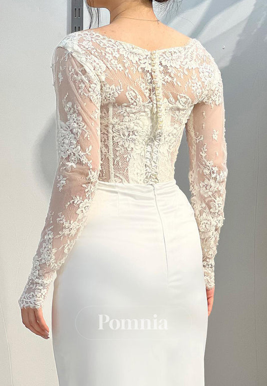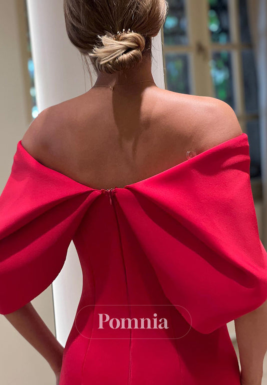 Sheath Off-Shoulder Long Sleeves Side Slit Evening Party Dress