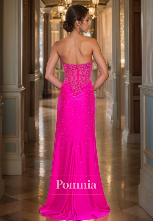 Strapless Sleeveless Corset Prom Dress with Side Slit Empire-Waist Evening Party Dress