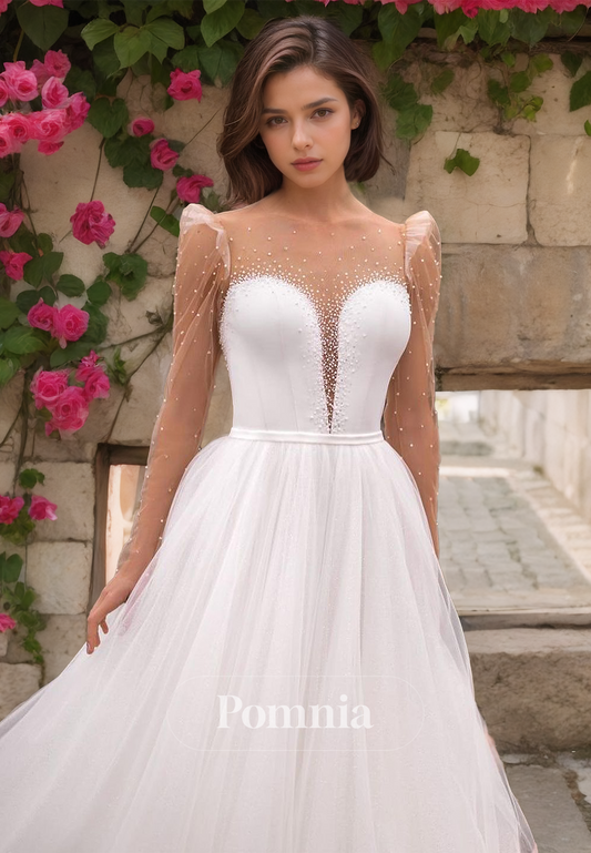Long Sleeves Backless Illusion Scoop A-Line Lace Wedding Dress