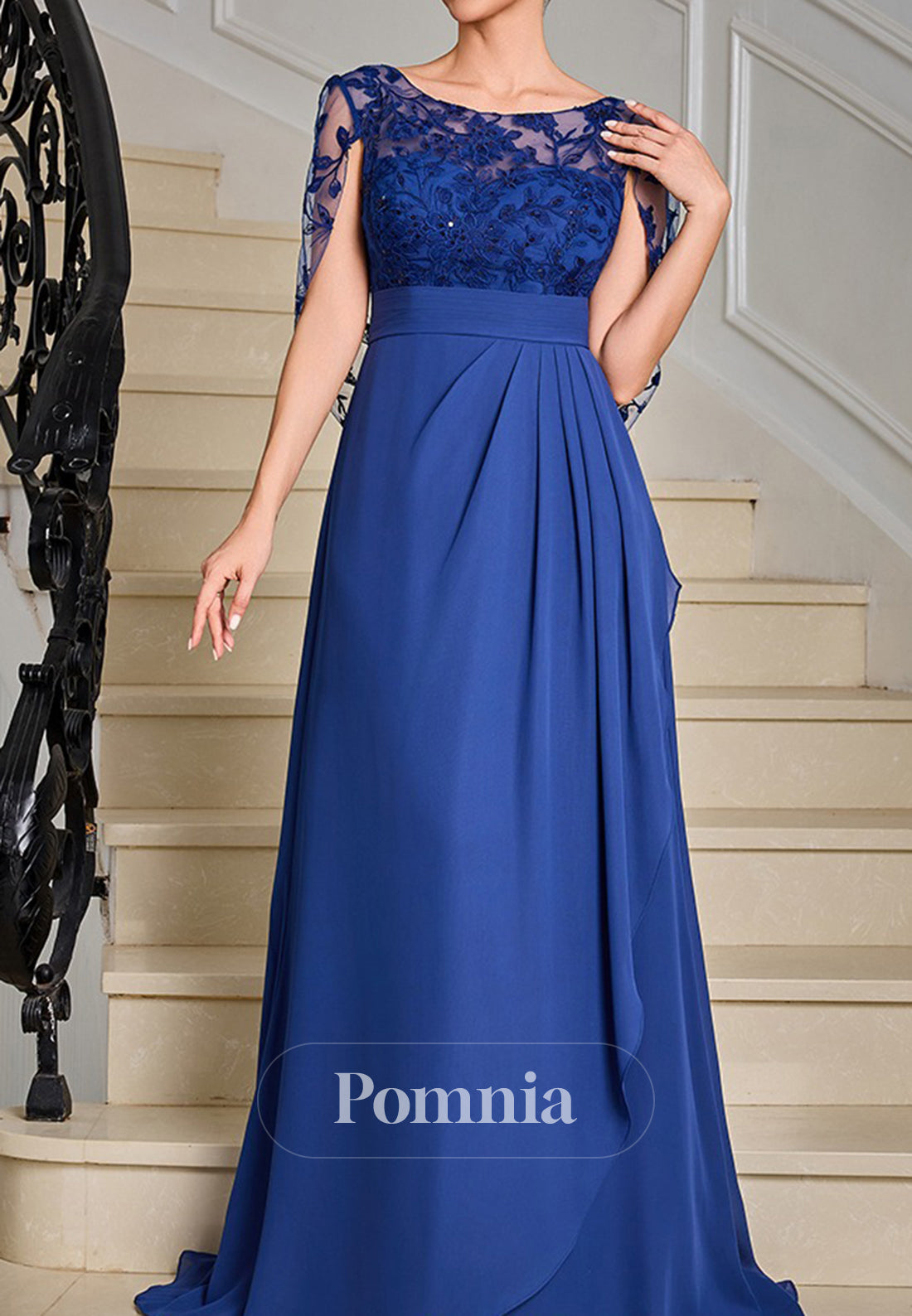 Royal Blue Cap Sleeves A-Line Empire-Waist Mother of the Bride Dress