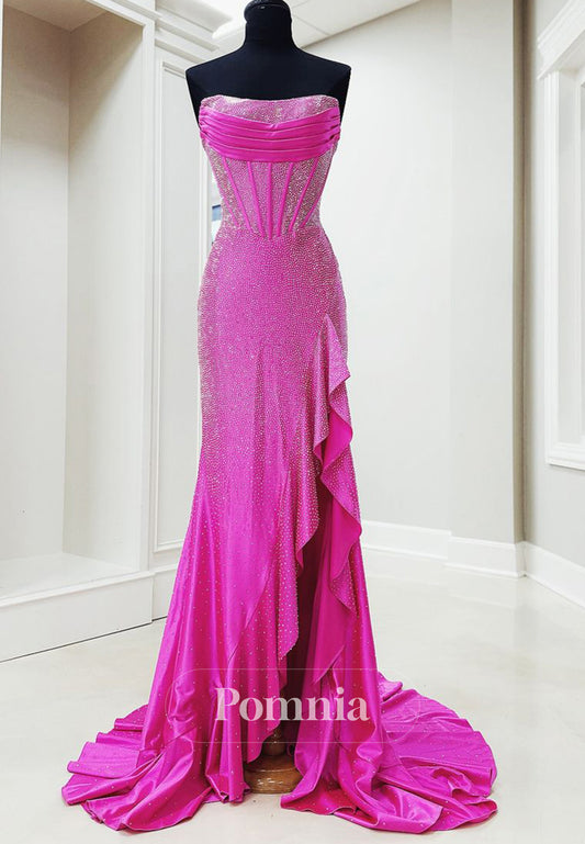 Sparkly Sleeveless Strapless Sequins Slit Prom Dress
