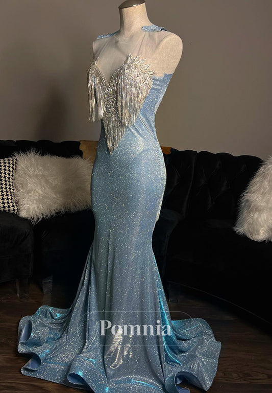Sparkly Spaghetti Straps Sequins Mermaid Prom Dress