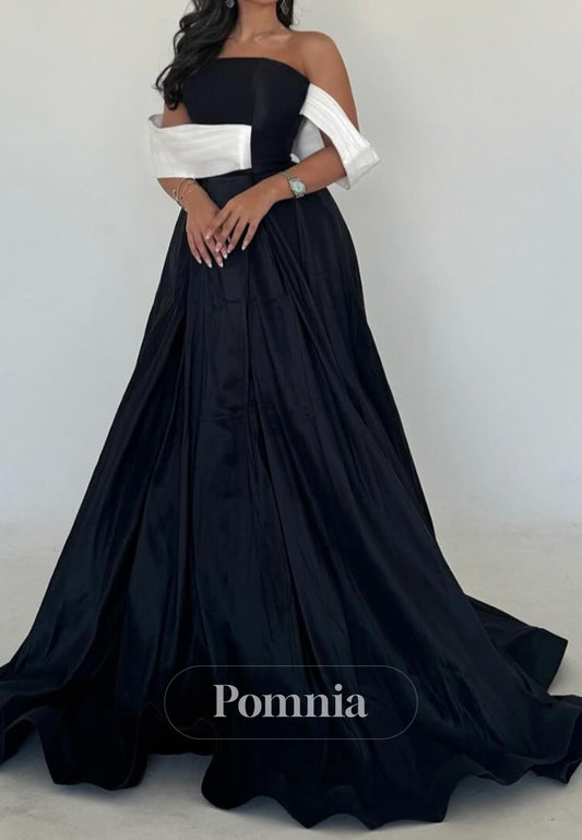 A-Line Sweep Train Evening Gown One Shoulder Formal Dress