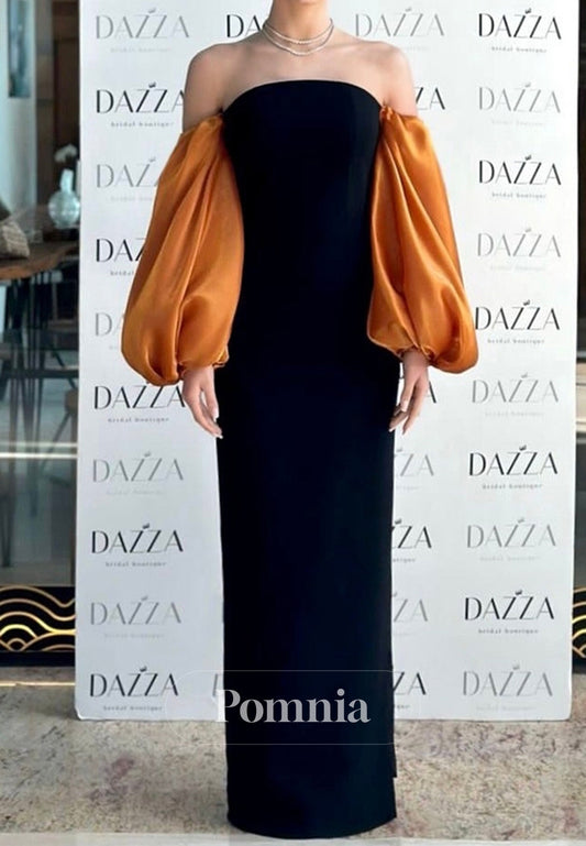 Black Long Sleeves Off-Shoulder Floor-Length Evening Dress