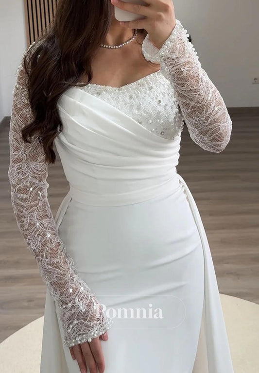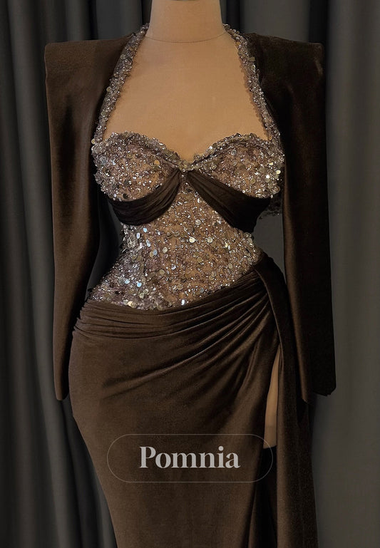 Mermaid Long Sleeves Sweetheart Slit Sequins Evening Dress