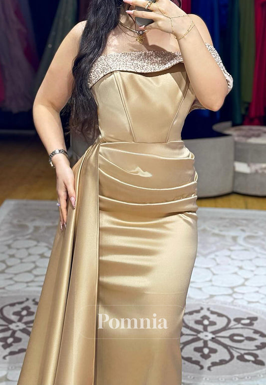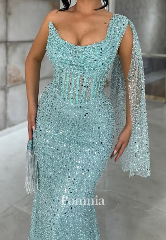 Mermaid One Shoulder Sleeveless Prom Dress with Sequins Ruched Evening Party Dress