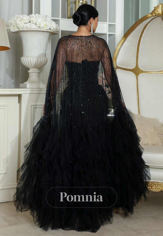 A-Line Sweetheart Cape Ruffles Evening Dress