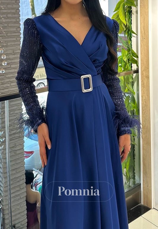 Elegant Long Sleeves V-Neck Empire-Waist Evening Dress
