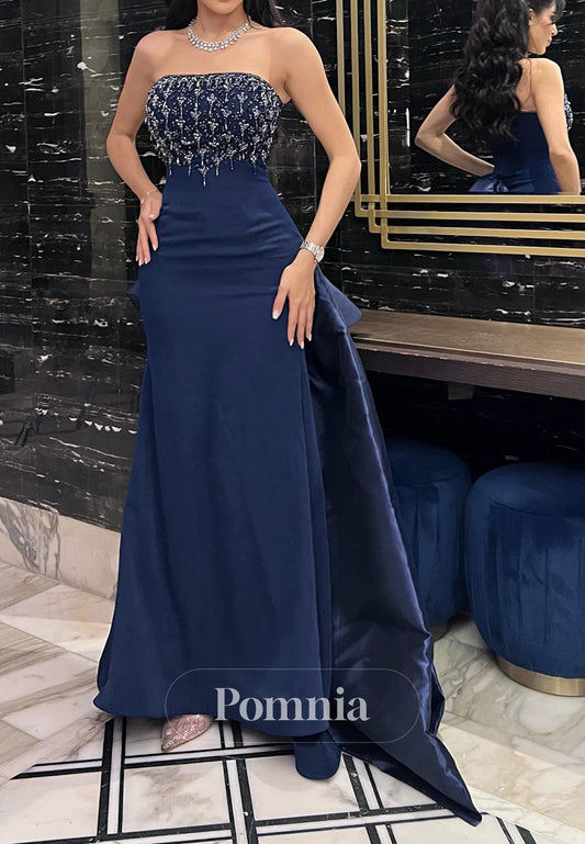 Dark Navy Strapless Sleeveless Sequins Evening Dress