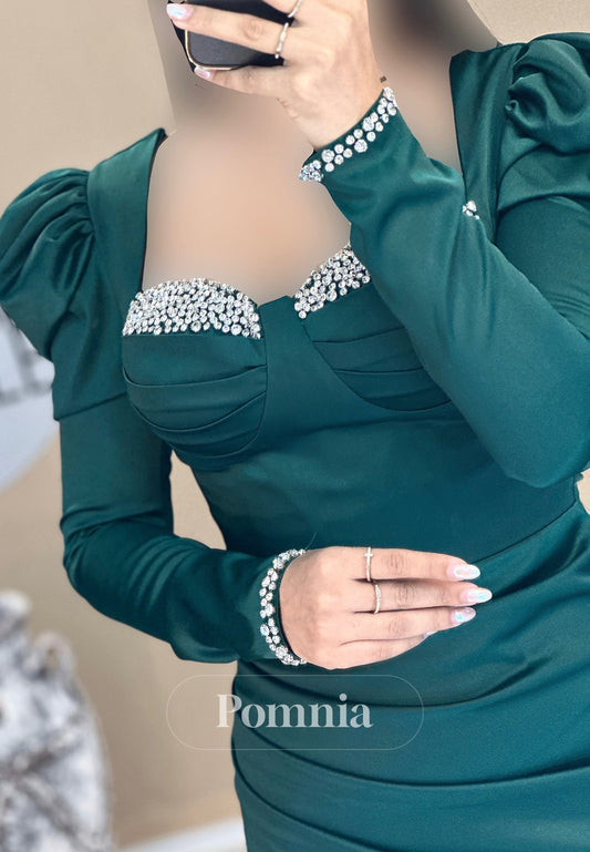 Sheath Long Sleeves Square Sequins Ruched Evening Dress