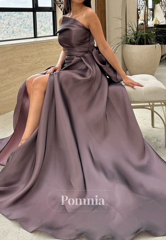 P1977 - A-Line Strapless Beaded Empire-Waist Pleated Long Prom Evening Dress with Slit