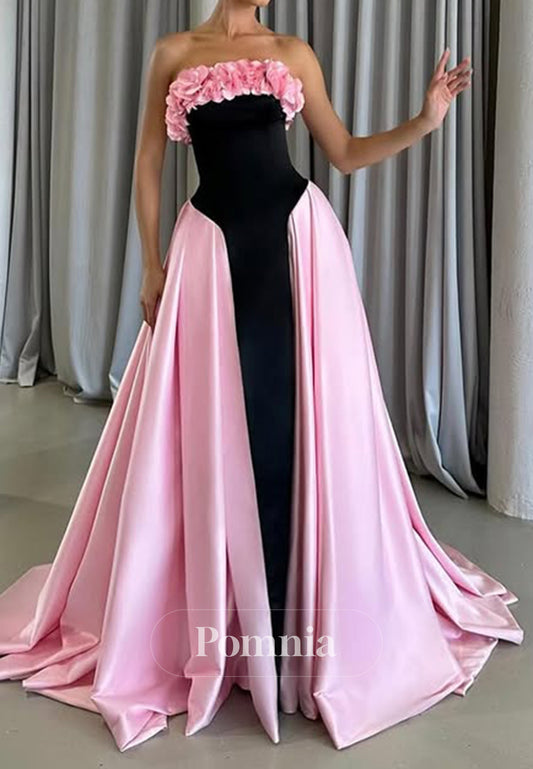 Charming A-Line Sleeveless Strapless Prom Dress with Train