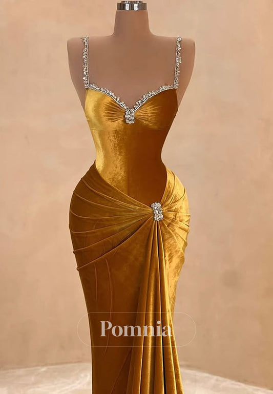 Sheath Velvet Spaghetti Straps Sweetheart Floor-Length Prom Dress