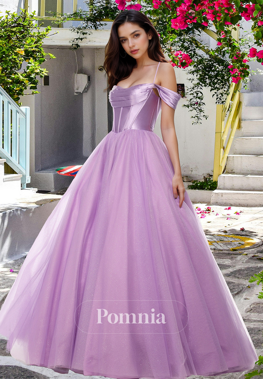 Lilac Spaghetti Straps Sweetheart Prom Dress with Slit Backless Corset Evening Party Dress